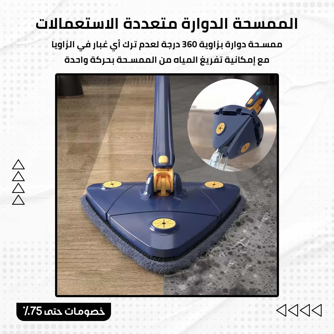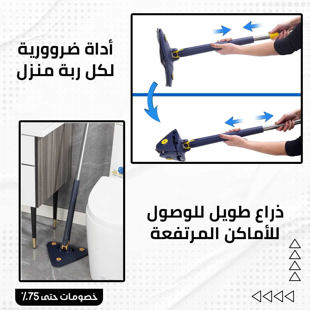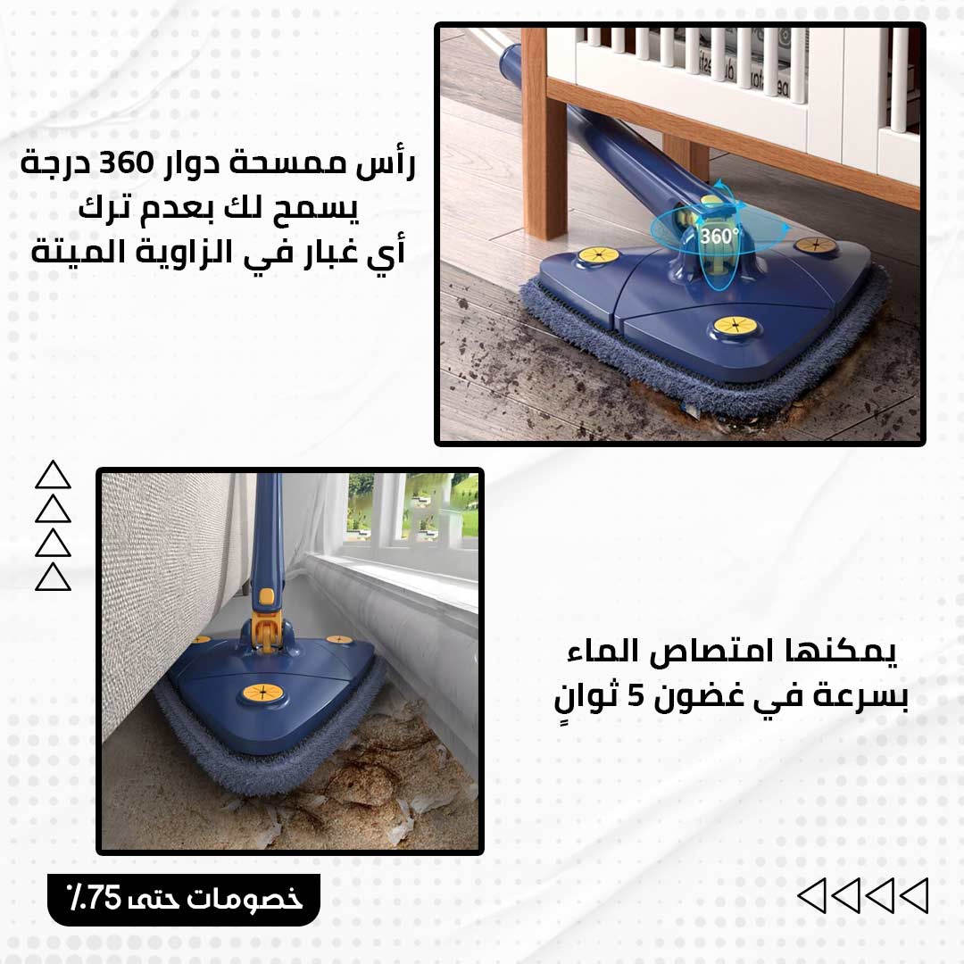 حرري يديك واجعل التنظيف أسهل ممسحة تنظيف قابلة للدوران 360 درجة، مع مقبض قابل للتعديل تدعم التنظيف الرطب والجاف