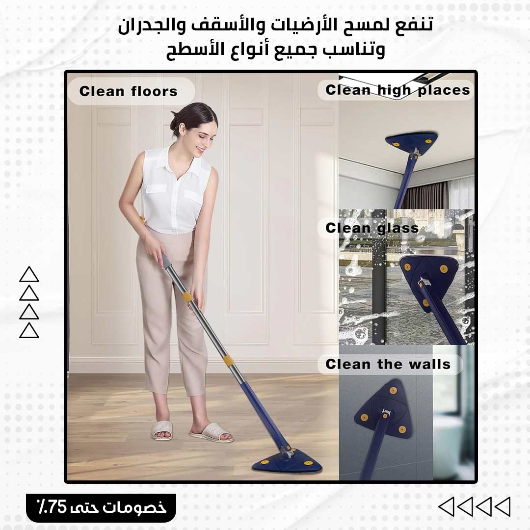 يسمح لك رأس الممسحة الدوارة بزاوية 360 درجة بعدم ترك أي غبار في الزاويا، تتبنى فرشاة التنظيف أحدث نوع من التصميم المثلثي، مما يسهل عليك التخلص من الغبار العنيد في زاوية الجدار والسقف والنافذة.