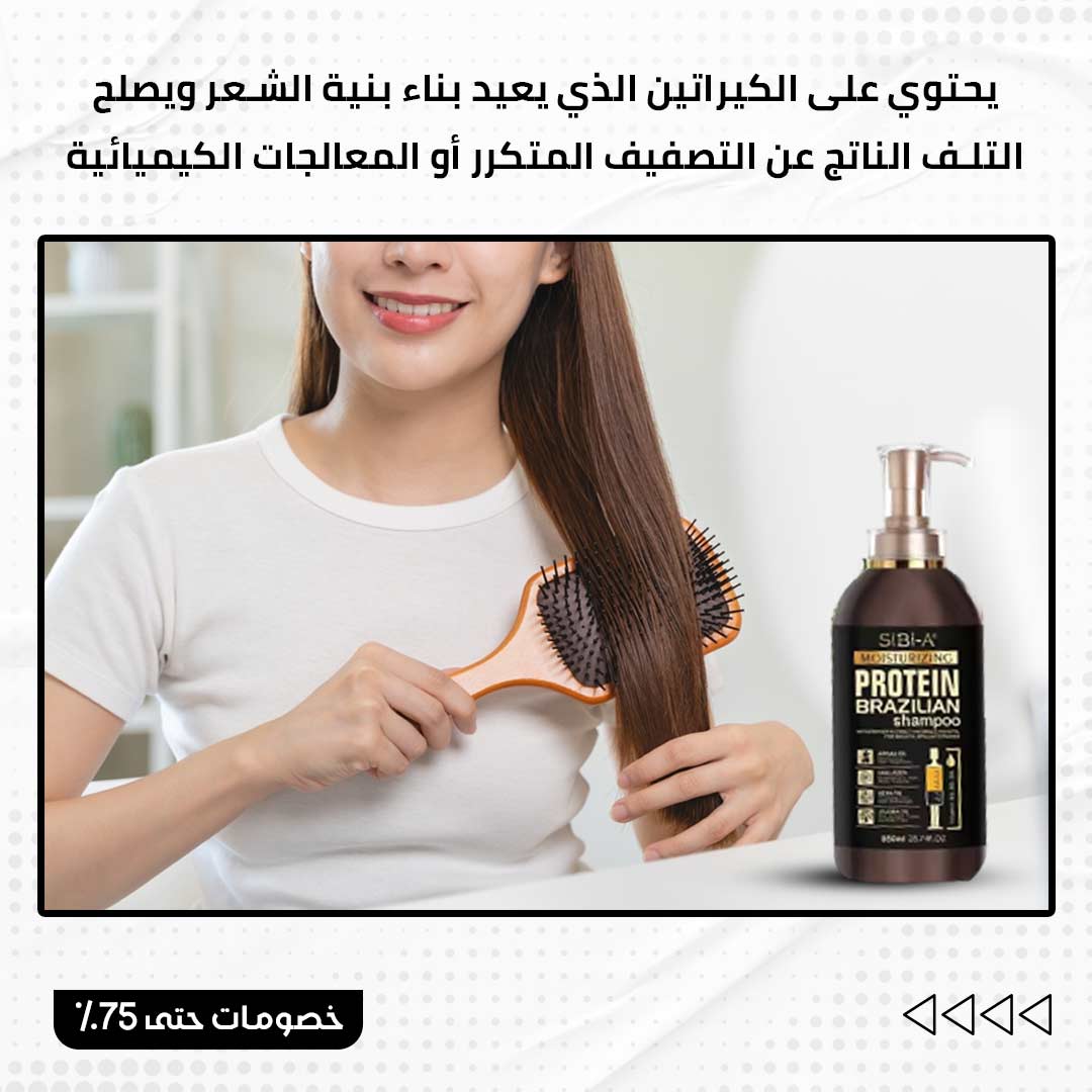 “شامبو الكيراتين البرازيلي هو الحل المثالي للشعر التالف والجاف والمتجعد، مصمم خصيصاً لتغذية الشعر بعمق وإصلاح التلف. يحتوي على كيراتين طبيعي مستخرج من مصادر برازيلية، يعمل على إعادة بناء ألياف الشعر ويمنحه نعومة ولمعاناً يدومان طويلاً. هذا الشامبو مثالي للشعر المعالج كيميائياً أو الشعر المتضرر من الحرارة، حيث يعيد إليه الحيوية والمظهر الصحي.”
