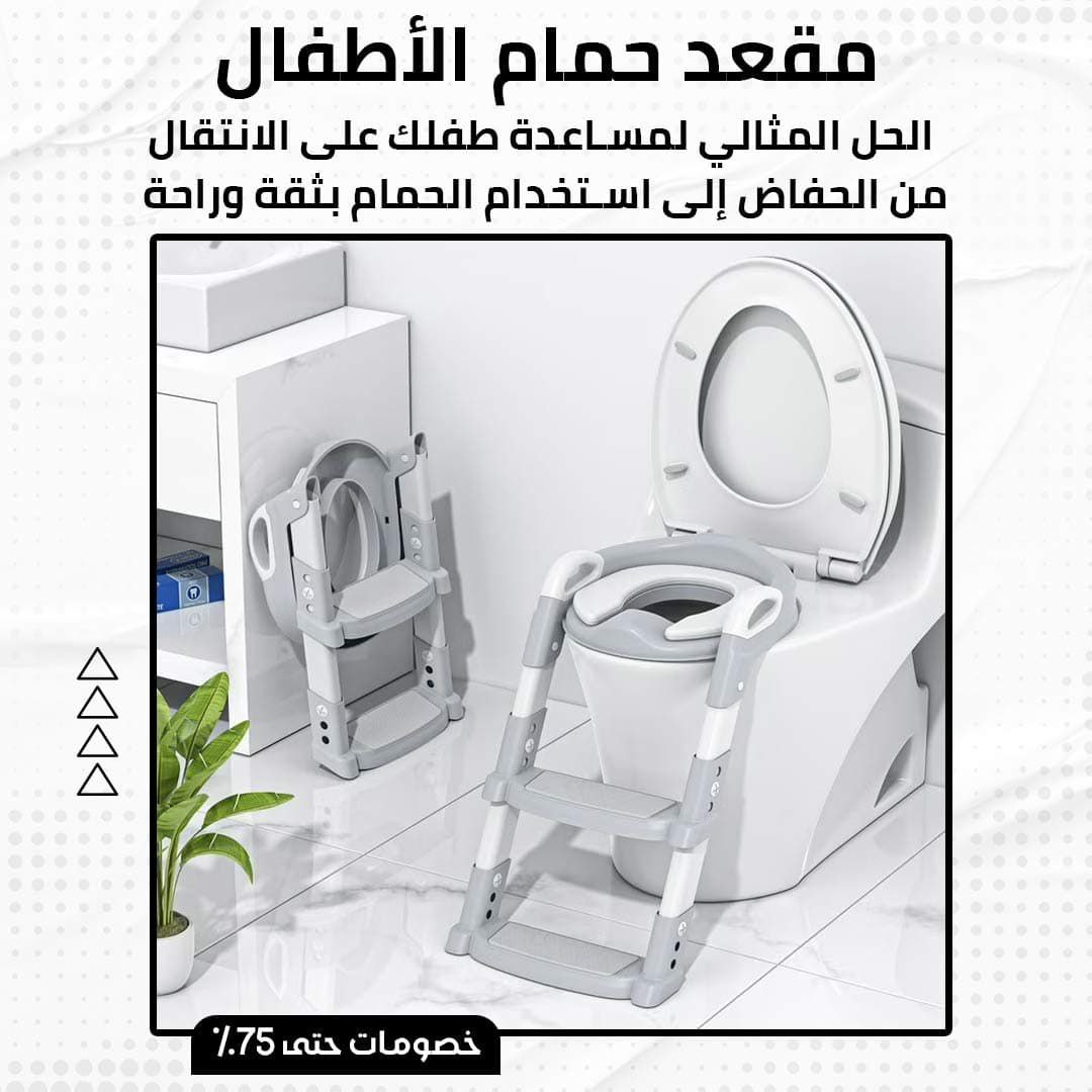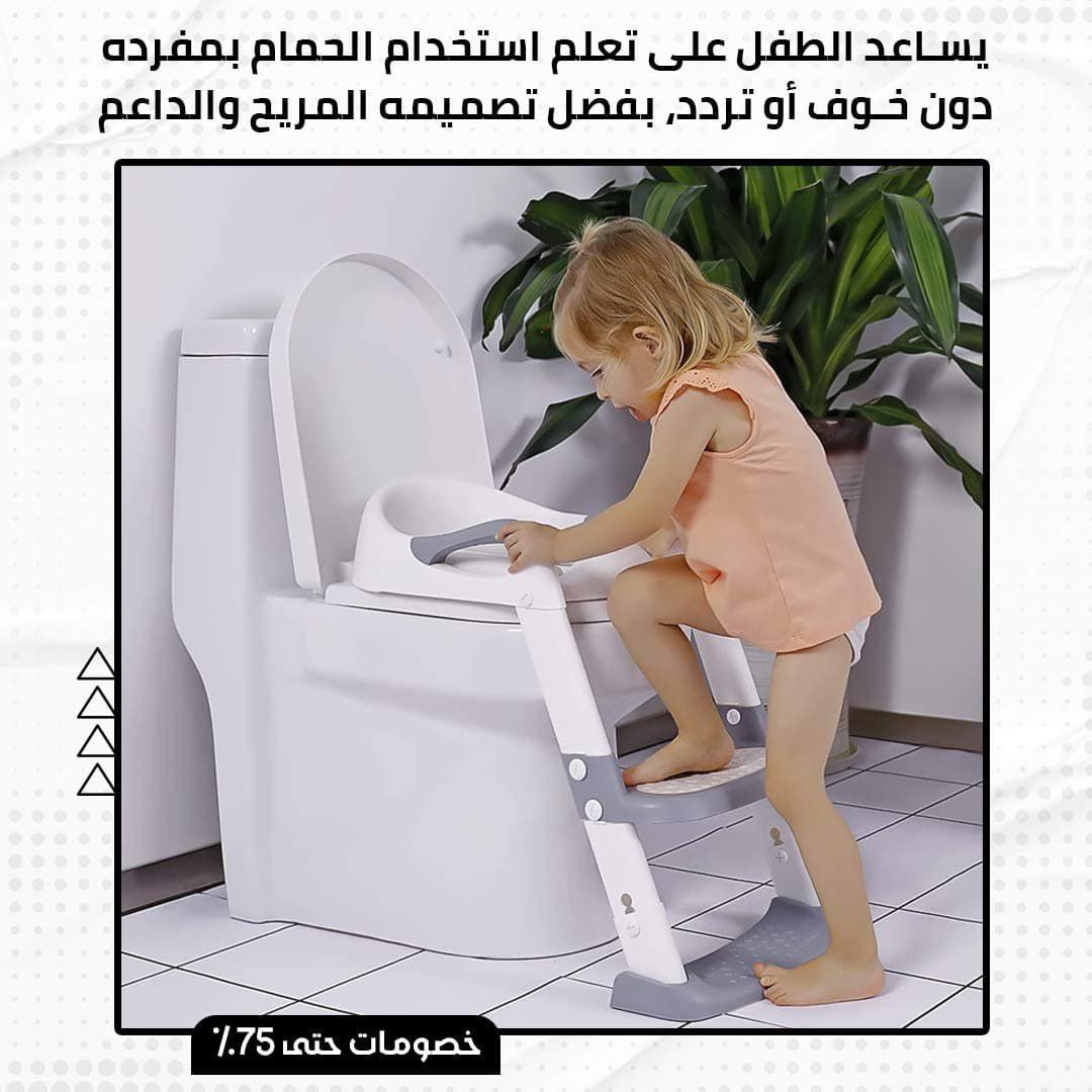 قابل للتعديل: يمكن ضبط ارتفاع الدرج والمقعد بسهولة ليتناسب مع طول الطفل وارتفاع المرحاض.