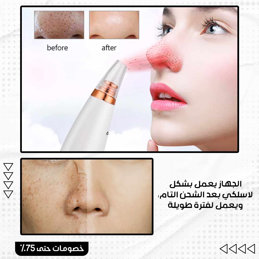 جهاز تنظيف مسام الوجه يعمل على تنضيف البشرة بشكل عميق ويزيل الدهون والزيوت الزيادة التي تتحول لحبوب فيما بعد ويخلص البشرة من الرؤوس السوداء